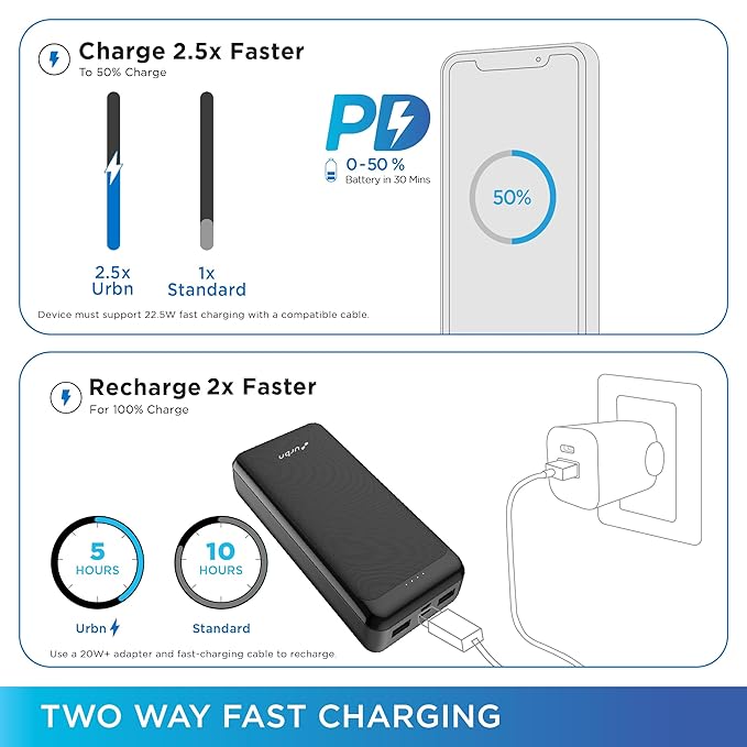 NEW URBN Power Bank 20000mAh Fast Charging | 22.5W Super Fast Power Delivery (PD) Portable Charger